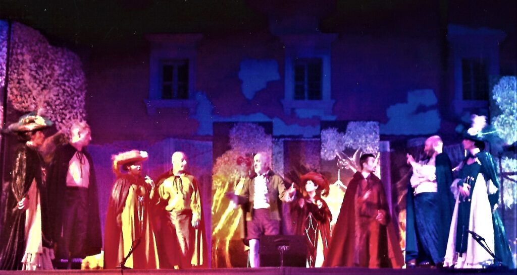 Il mio intervento sul testo originale di Shakespeare è stato molto forte; del resto questa commedia (molto apprezzata dalla regina Elisabetta I, che riconosceva in molti dei balordi personaggi, alcuni dei suoi collaboratori non proprio esemplari) non potrebbe essere rappresentata nella versione originale proprio per i numerosissimi riferimenti ai fatti dell’epoca, che oggi nessuno potrebbe comprendere. Non ho ritenuto nemmeno opportuno attualizzarli, ricorrendo a qualche facile riferimento alle situazioni odierne che tutti ben conosciamo, ma che non sono meritorie di un tale onore!